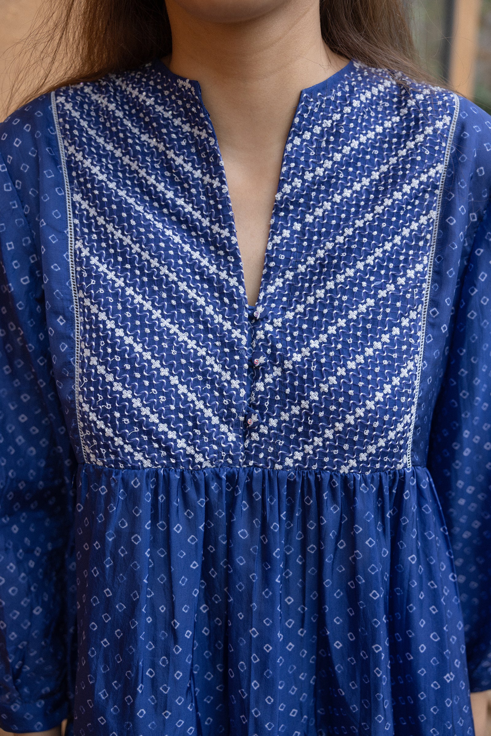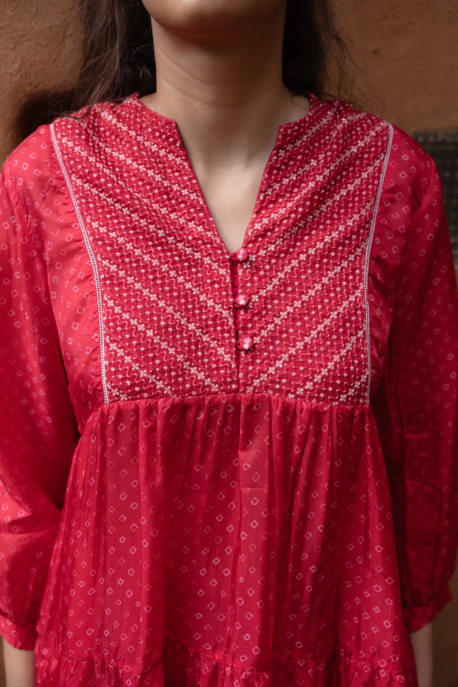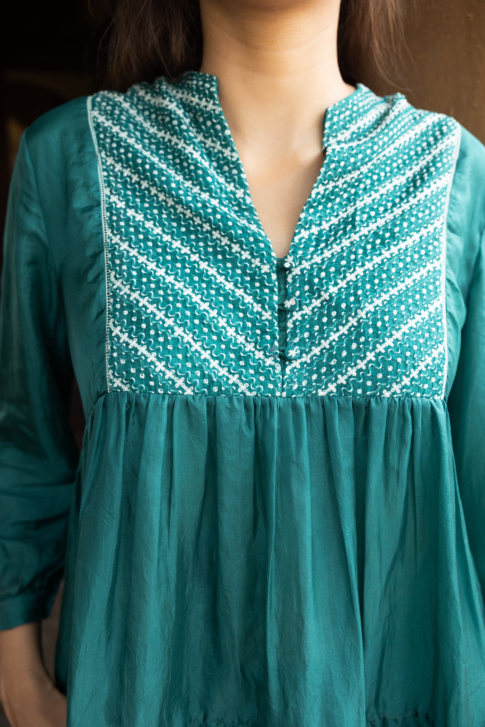 Tiered top with hand embroidered yoke