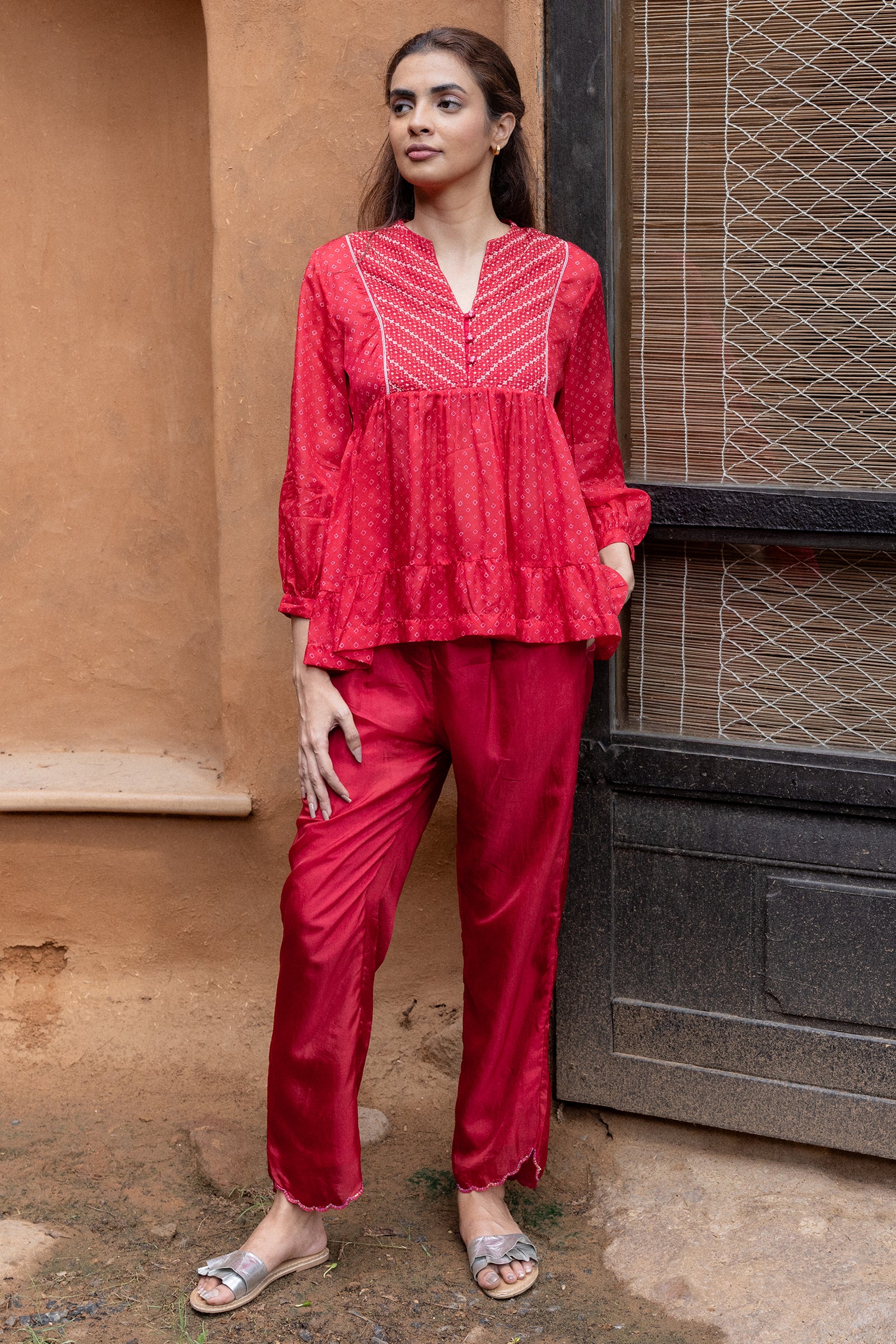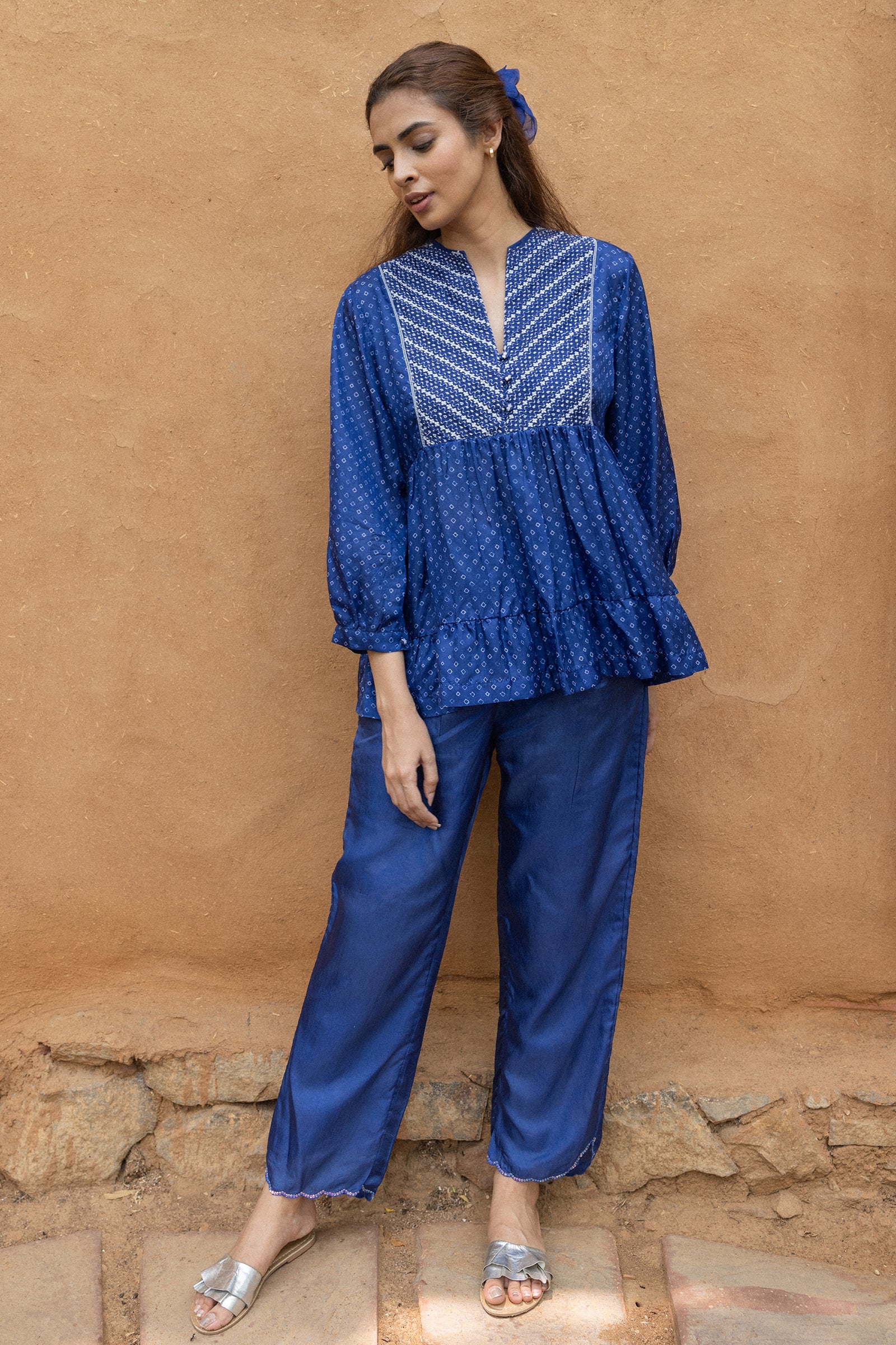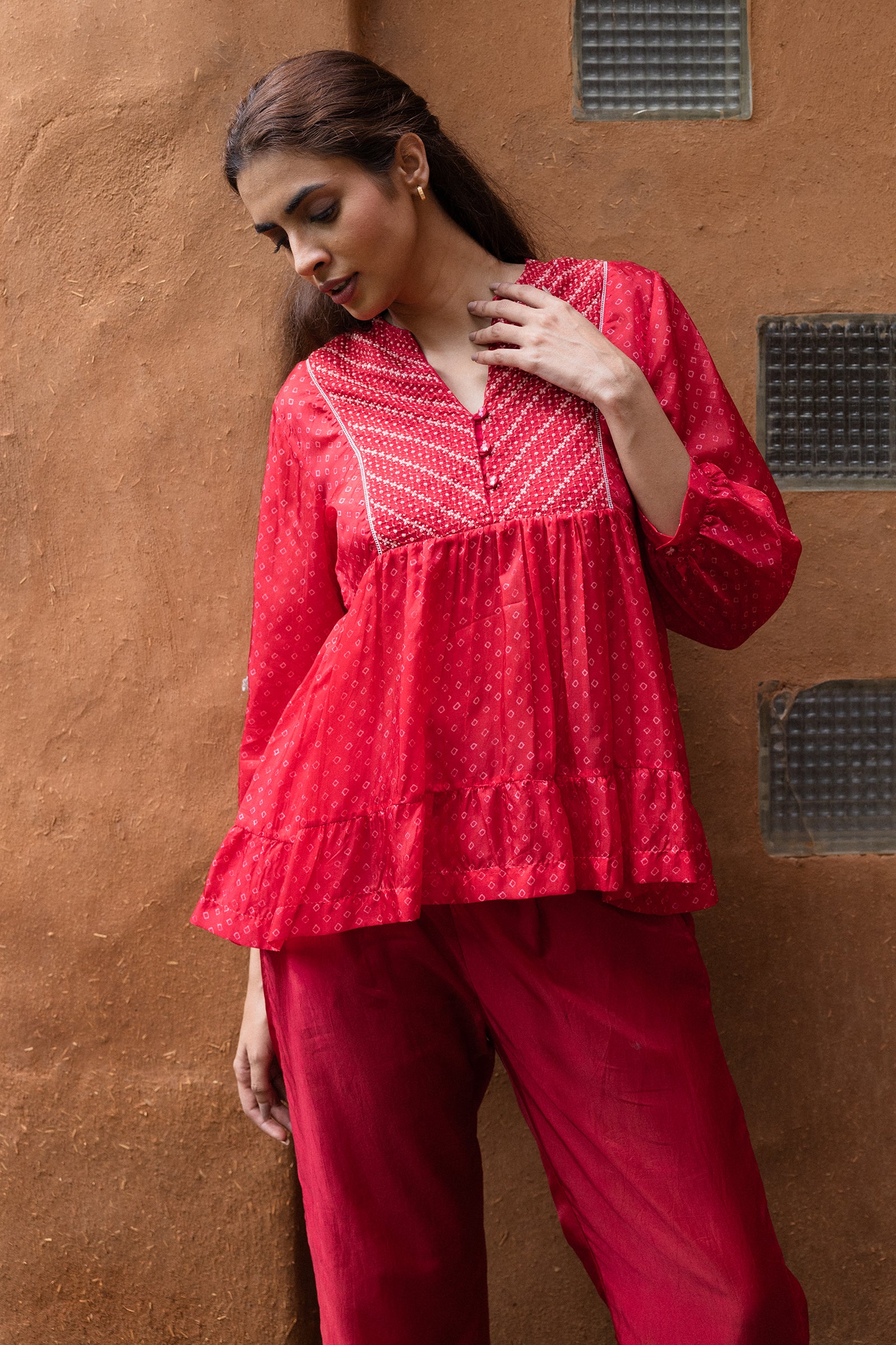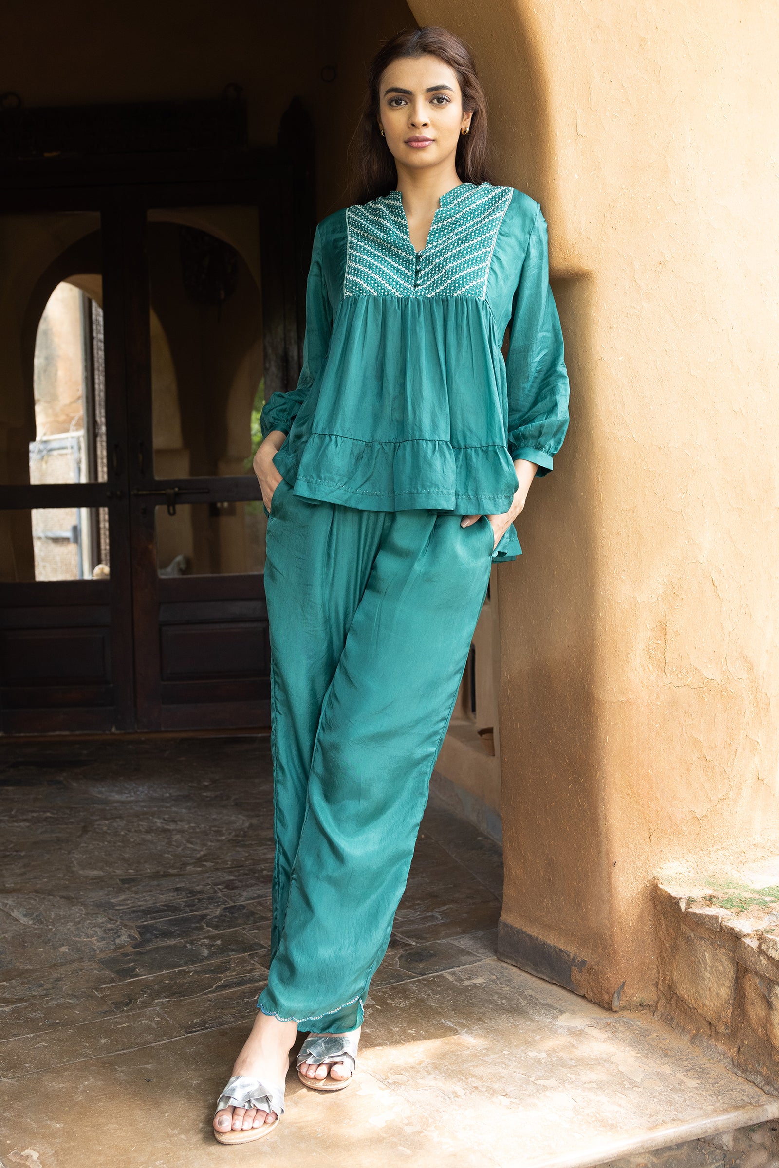 Tiered top with hand embroidered yoke