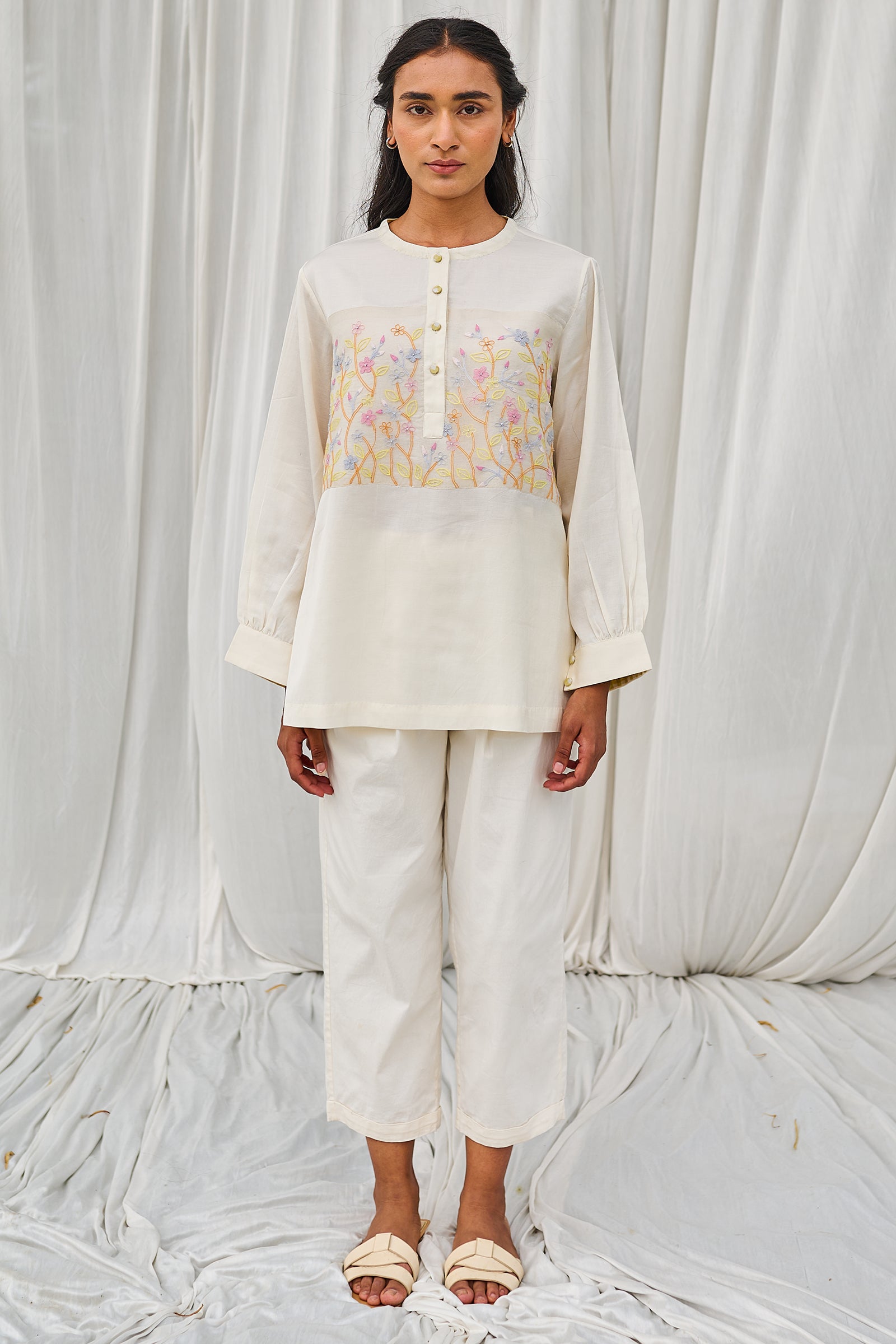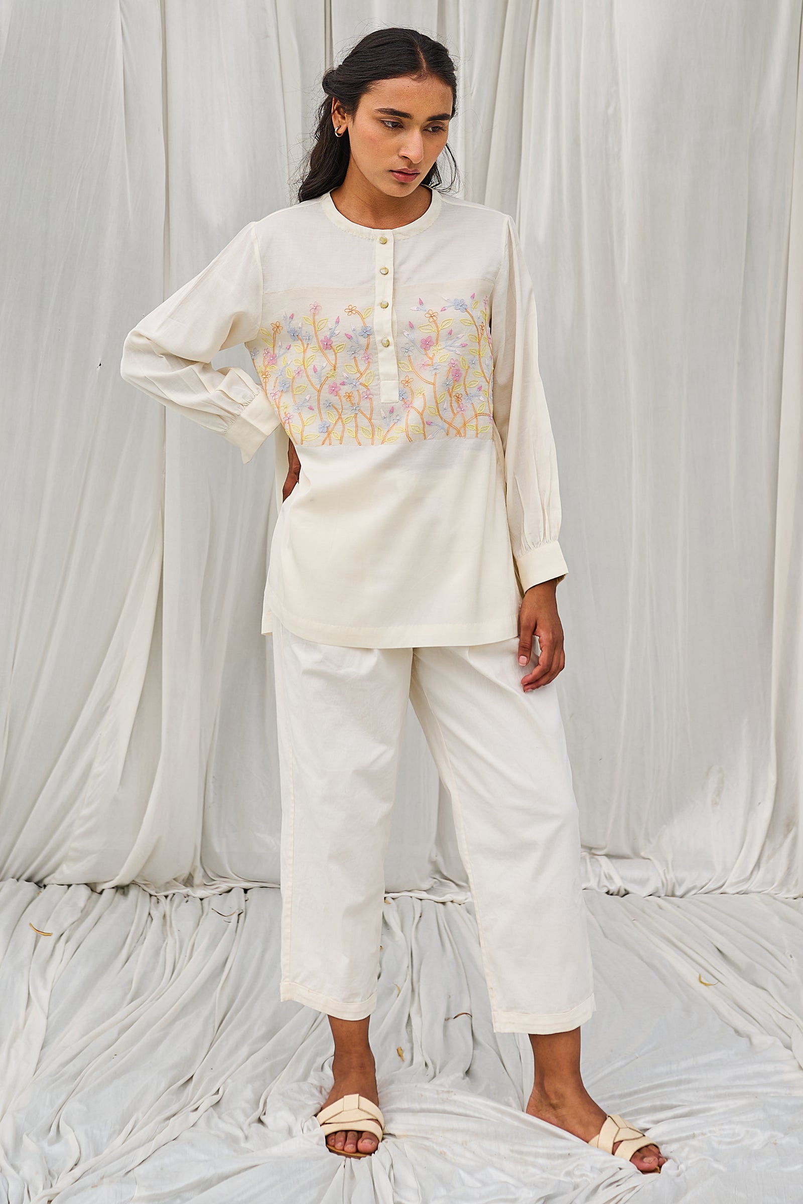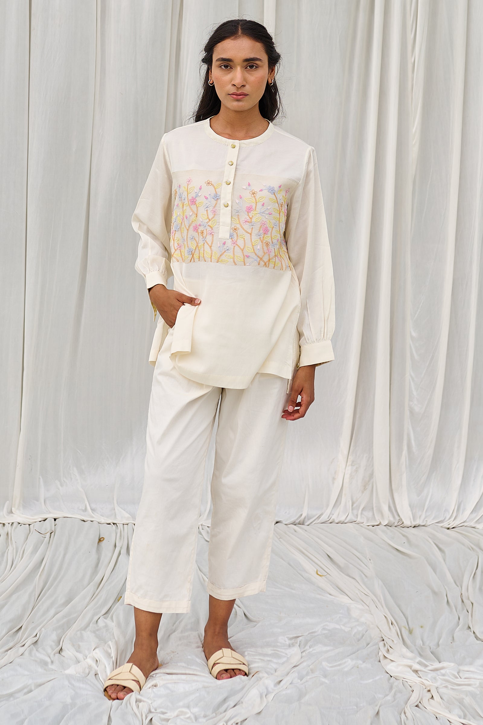 Floral hand block printed top