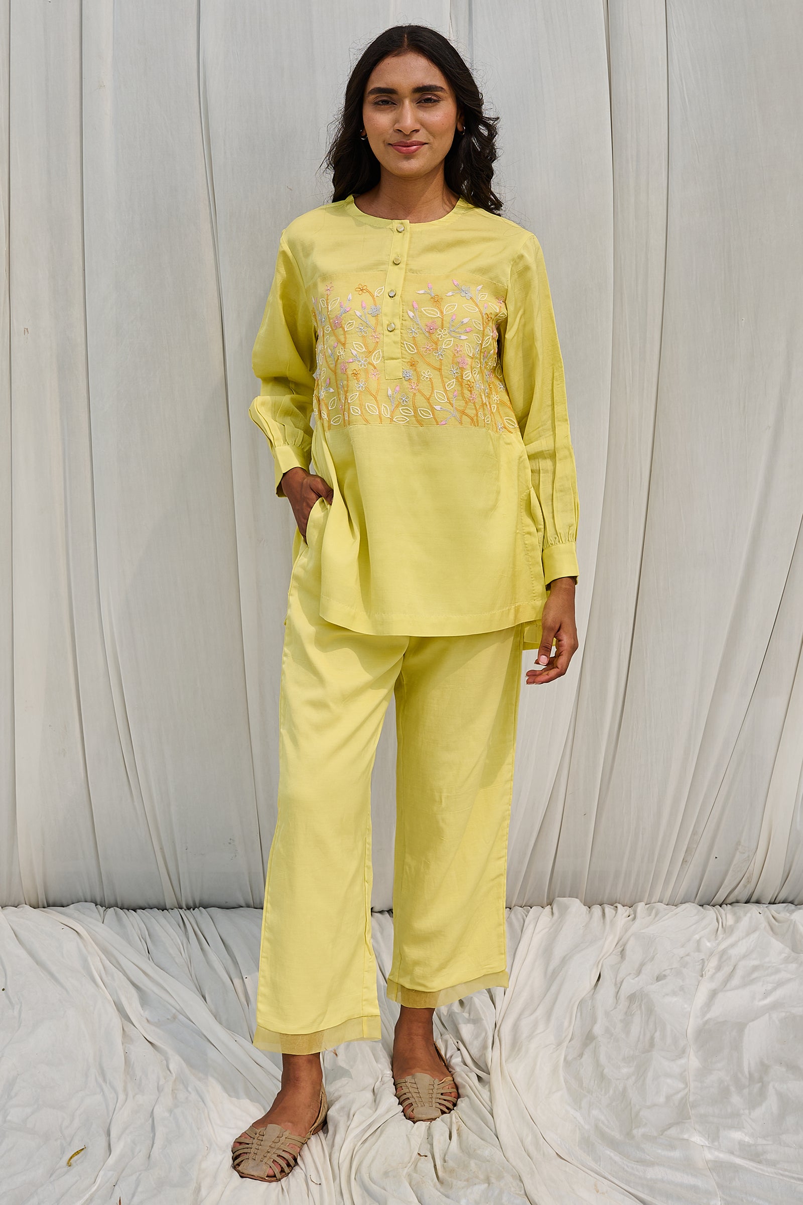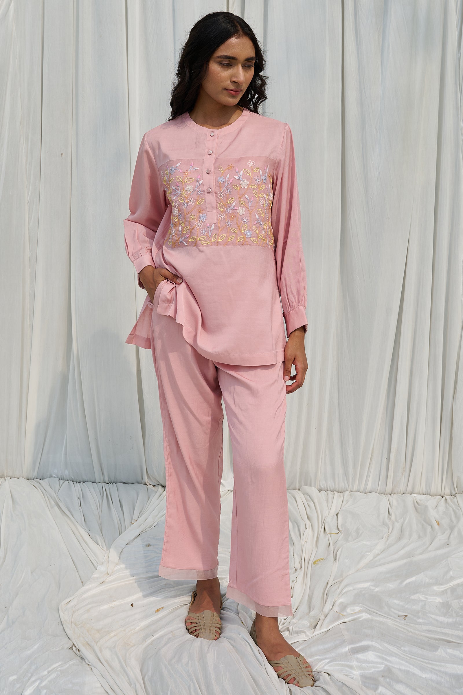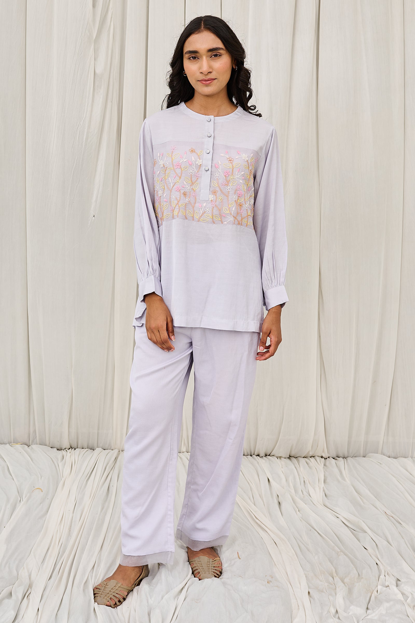Floral hand block printed top