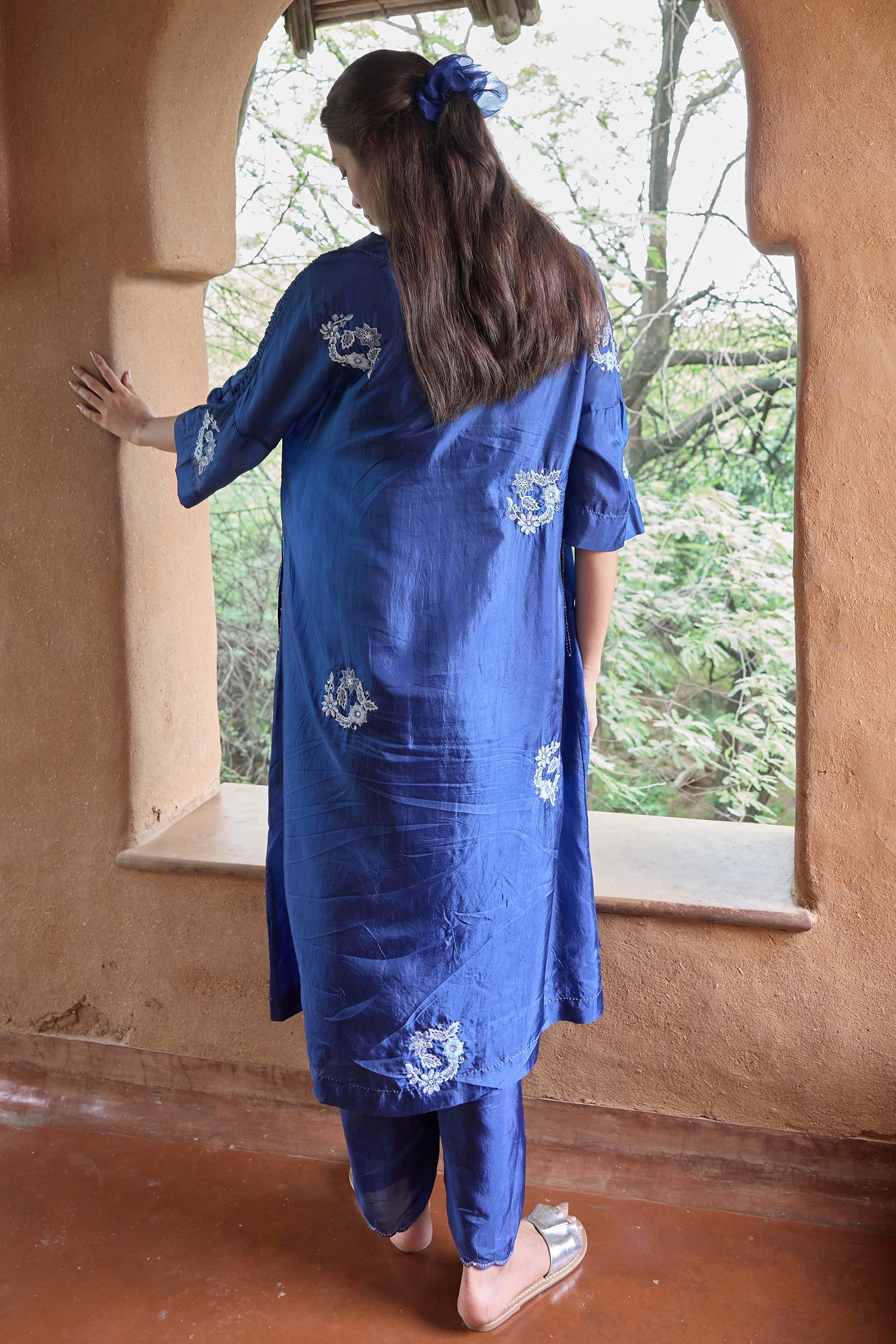 Tunic with smocked shoulder details and all over hand embroidered floral motifs.