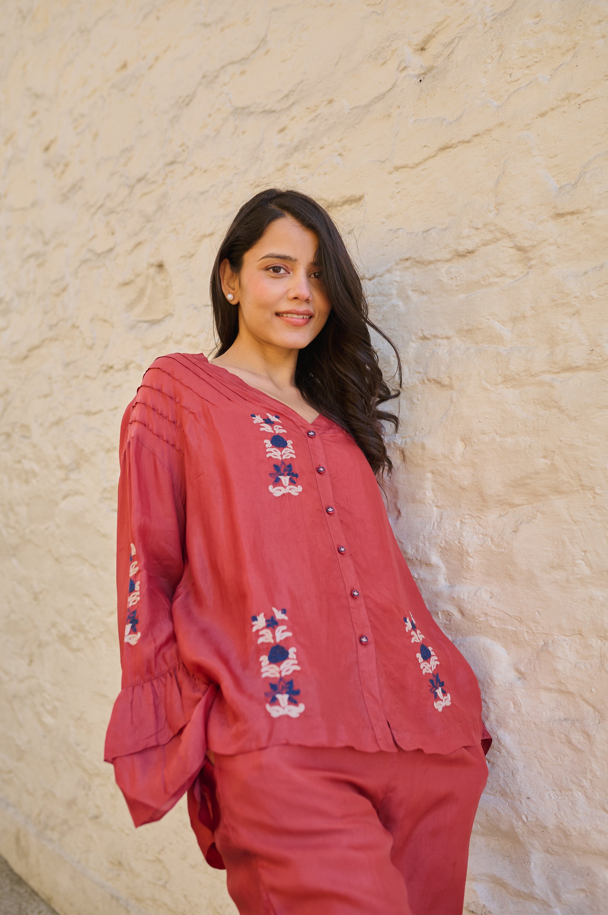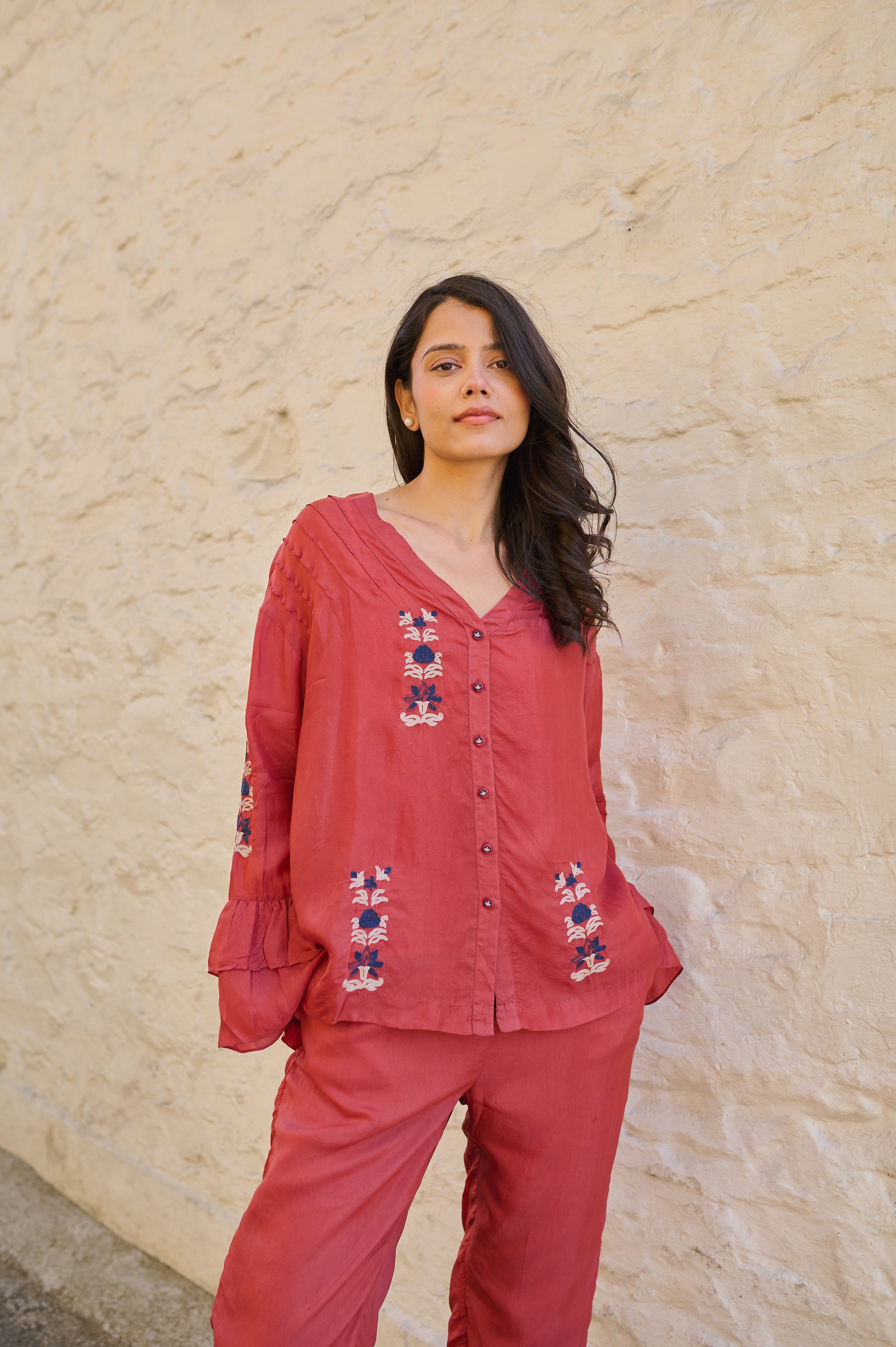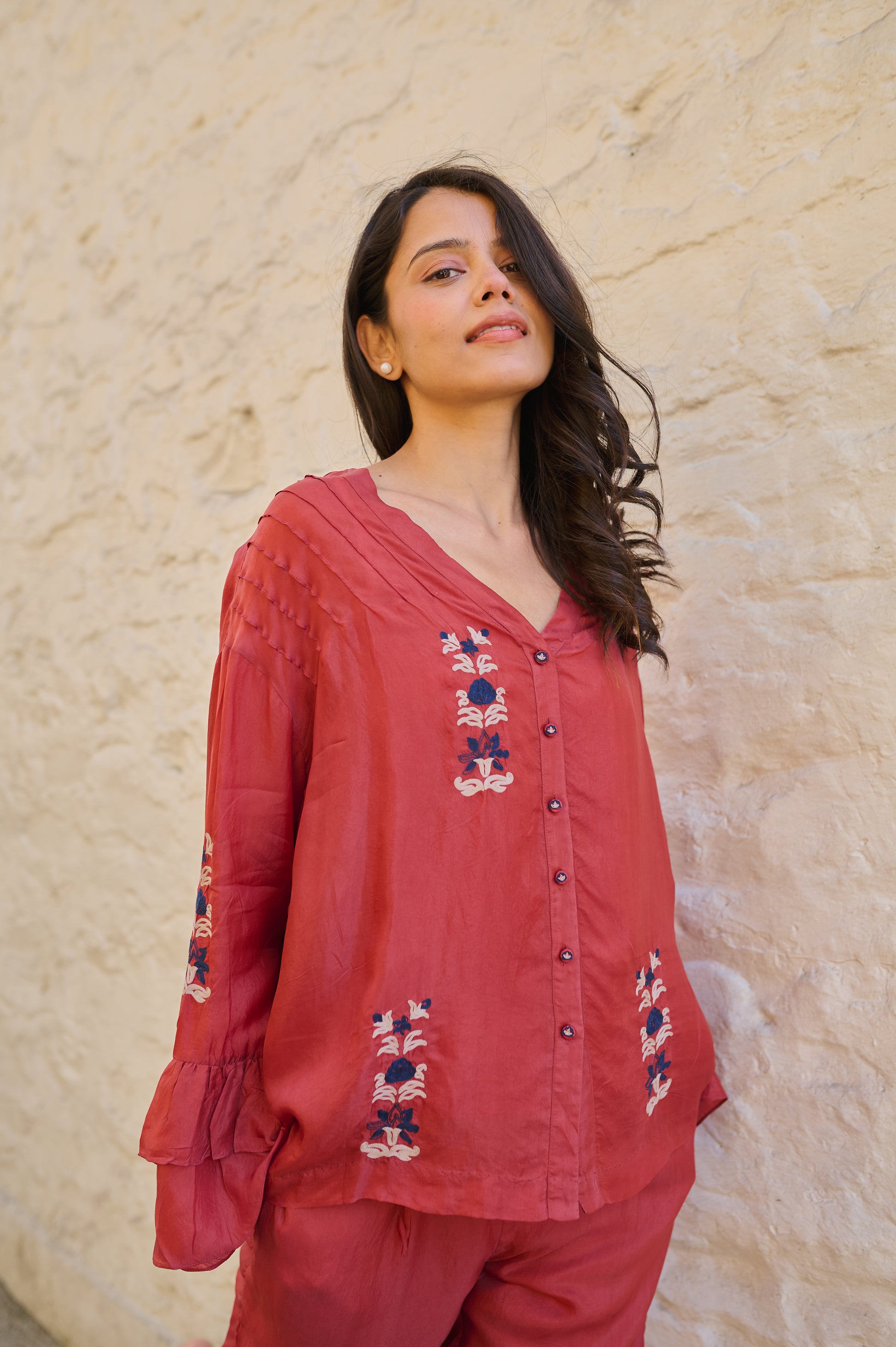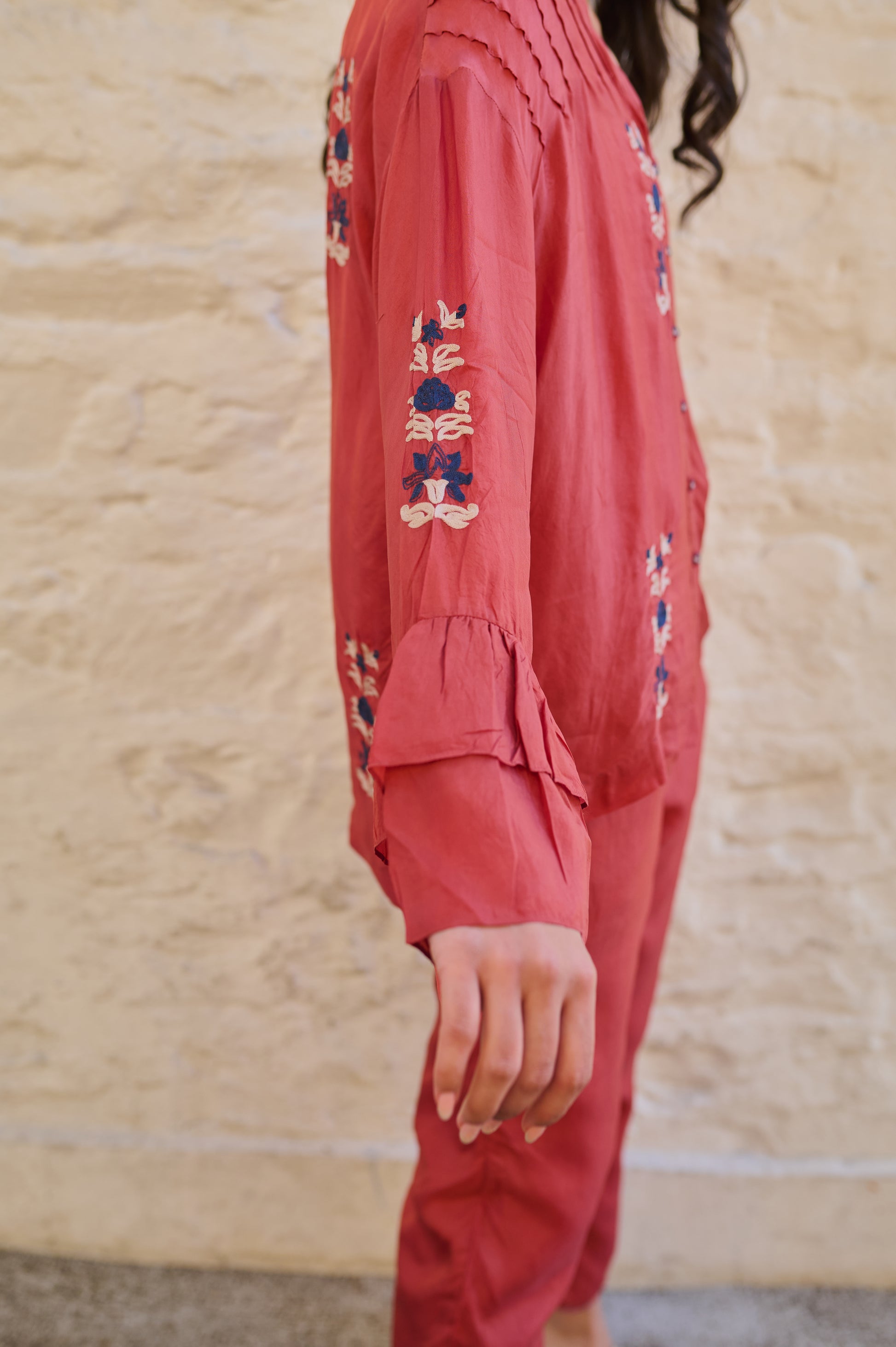 Ruffle sleeves hand embroidered top with spaghetti strap lining