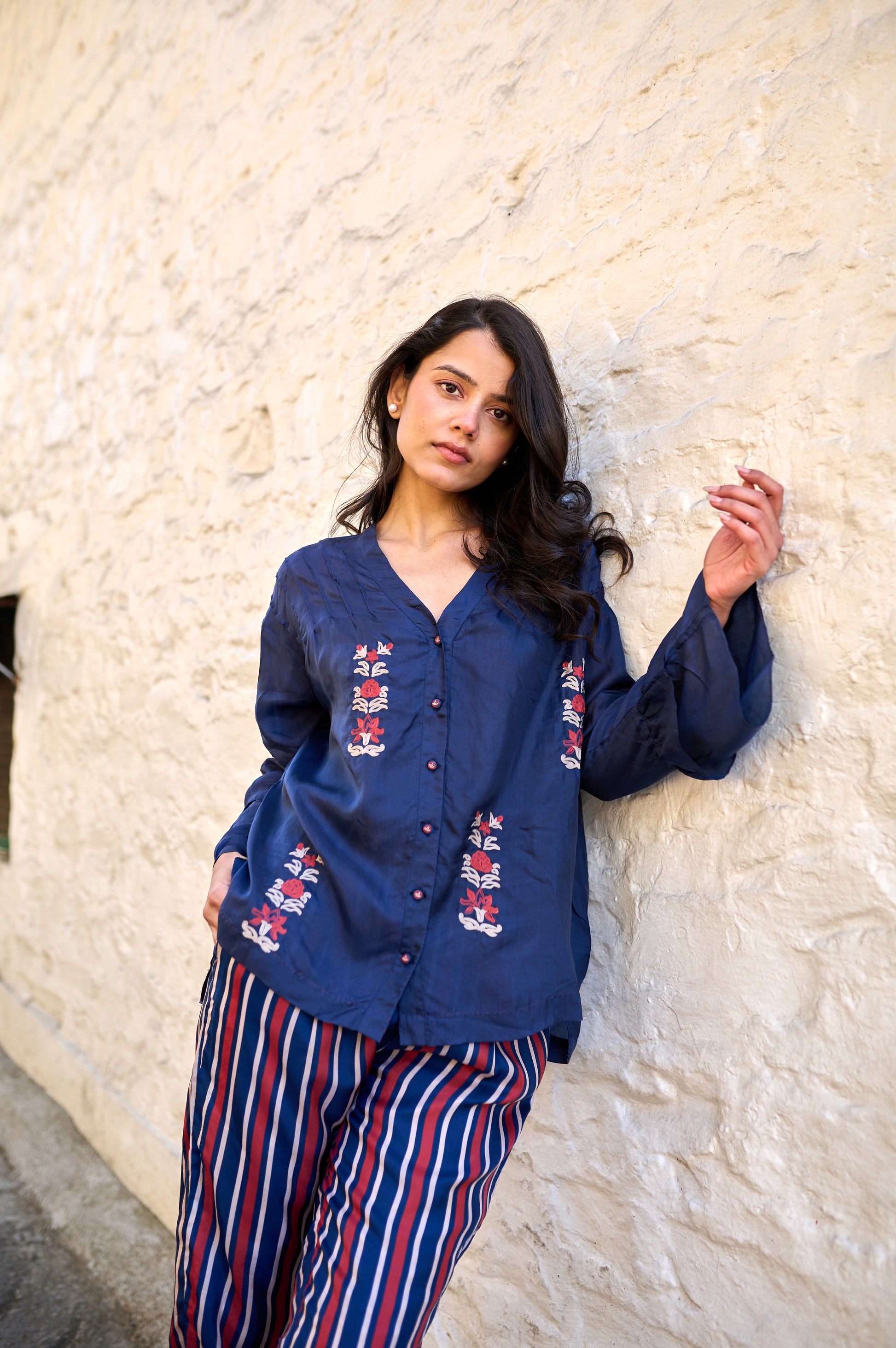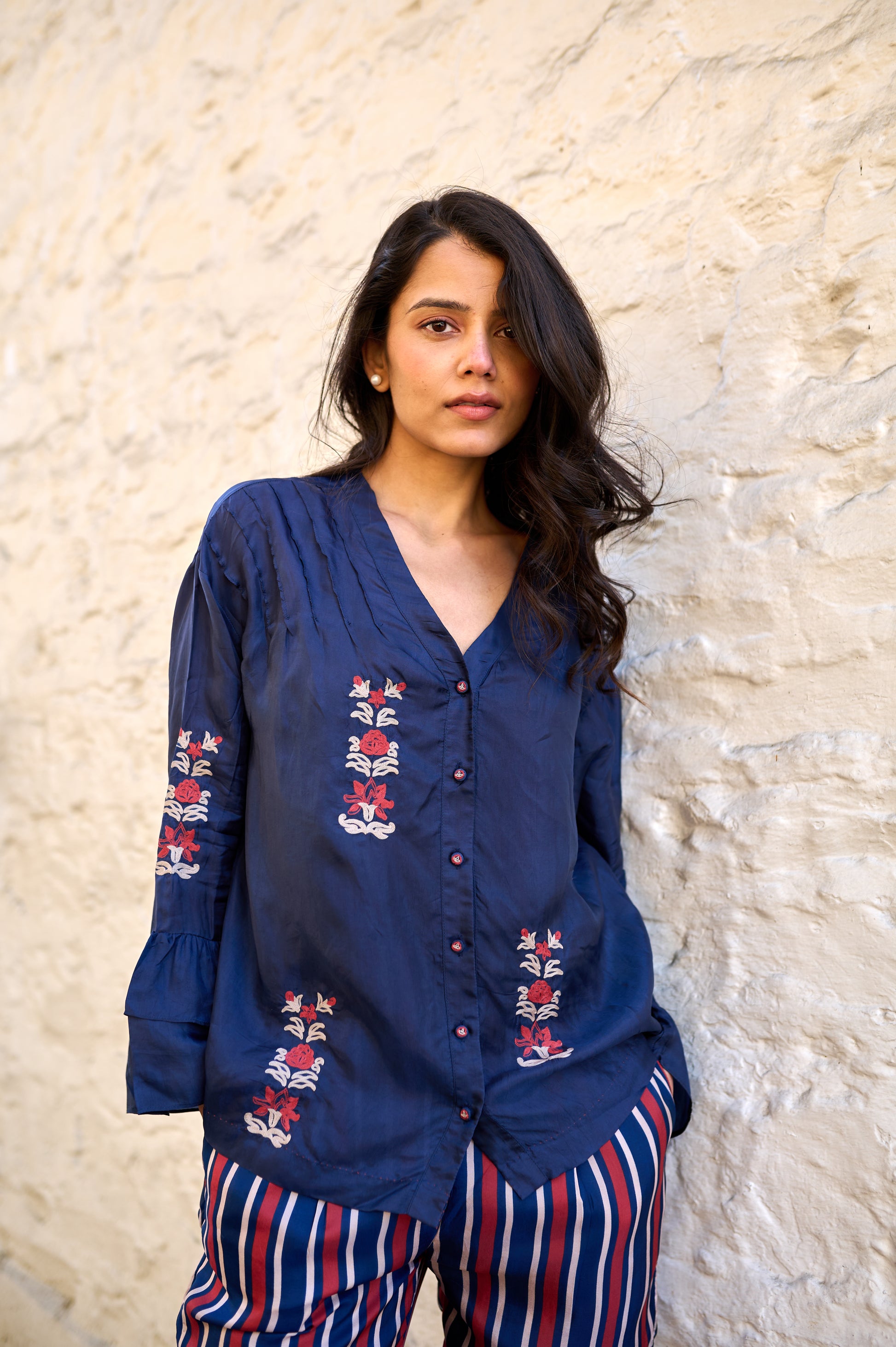 Ruffle sleeves hand embroidered top with spaghetti strap lining