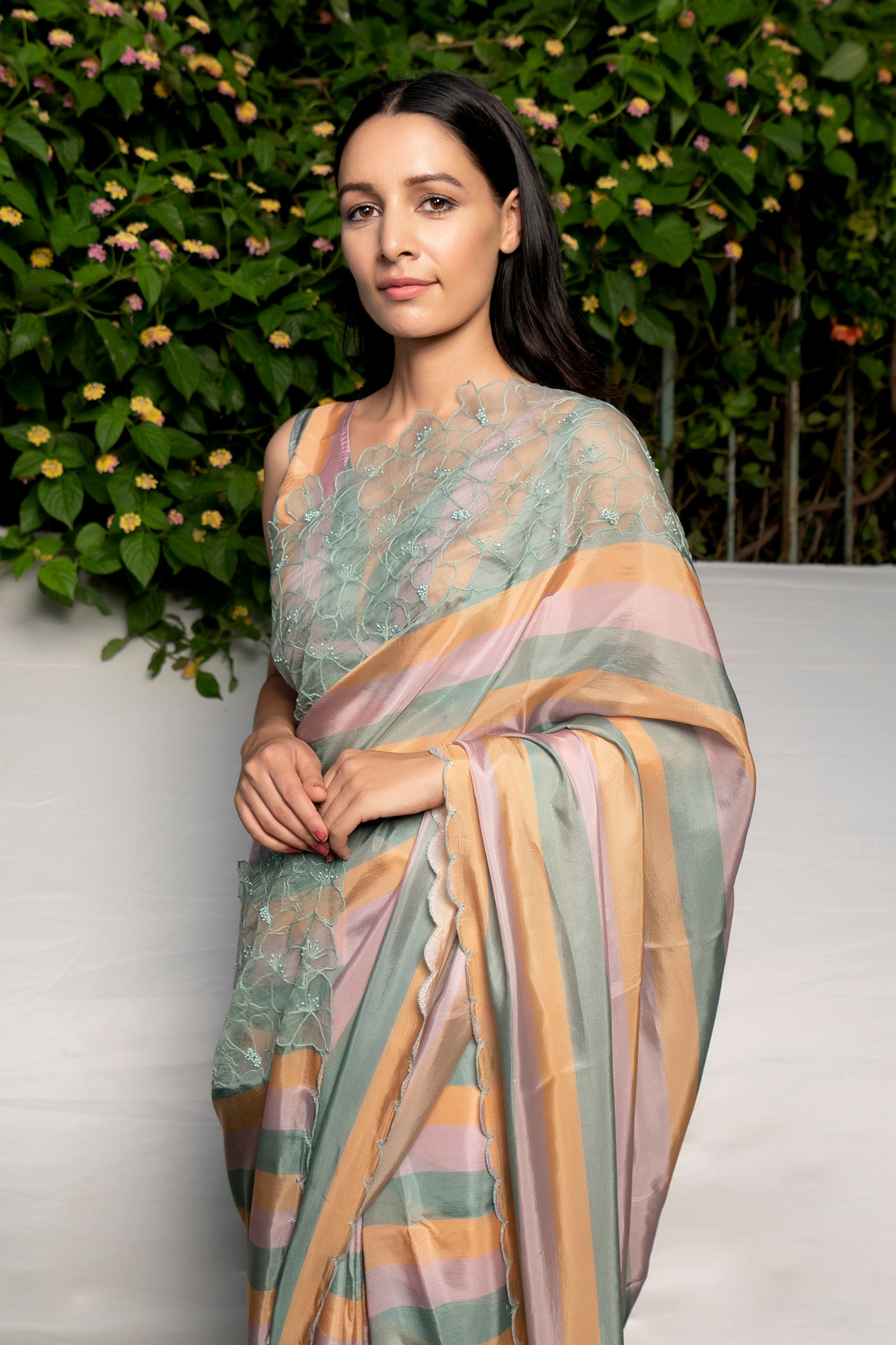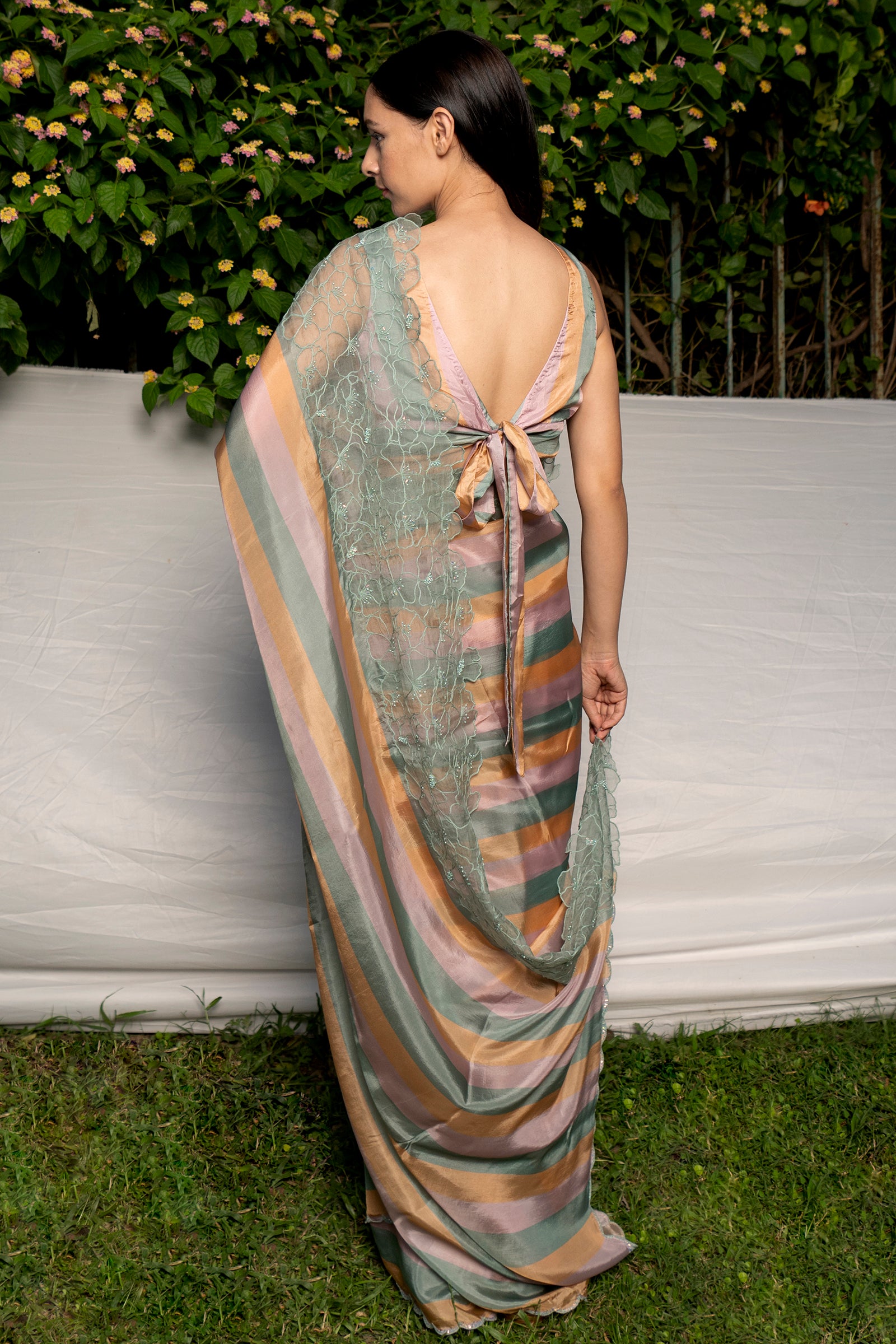 Silk organza multi stripes saree